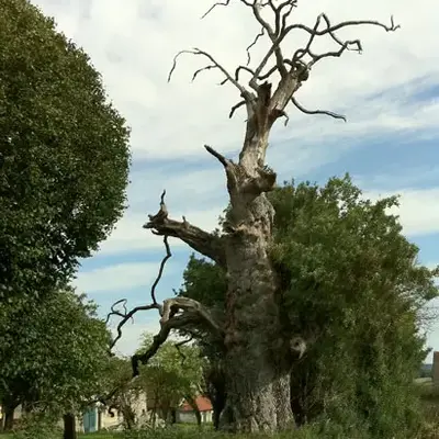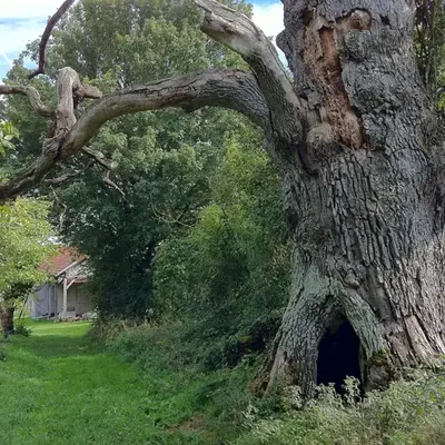 | Le Chêne à la Vierge Dans le hameau du Plessis, nous pouvons encore voir un très gros chêne, qui a une petite histoire, que tous les habitants de la commune connaissent. Selon les dires des anciens, la Vierge serait venue s'asseoir au pied de ce chêne, ce qui lui valût le nom de "Chêne à la Vierge". Une tradition remontant certainement à l'époque du couvent de Brigittins, mais perdue de nos jours, voulait que les femmes enceintes viennent prier et brûler un cierge devant ce chêne. Ce rituel donnait le privilège, à ces futurs mères, d'avoir du lait pour leur permettre d'allaiter leur nourisson. Jusque dans les années 1930, des pèlerinages ont eu lieu à cet endroit. Plusieurs fois, le chêne a été victime de débuts d'incendies causés par des cierges placés sur des branches. Il faut noter que cet arbre a toujours été épargné par la hâche du bûcheron, et que la parcelle du terrain où il se trouve, n'a jamais été comprise dans les différents partages et ventes de terrains alentours. |